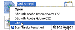 2.  kemudian dalam komputer buka Free Template yang kita donlot dengan program Notepad. caranya klik kanan mouse  Edit atau bisa juga -> Open with -> Notepad.
