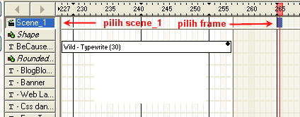 1. pilih tulisan scene_1 di Timepanel, dan pilih juga Frame yang paling akhir .