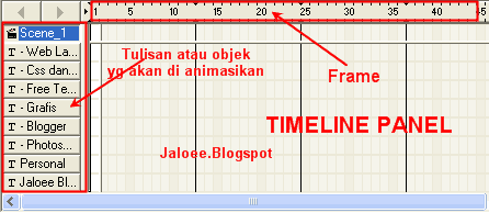 1. Di bagian timeline ini pilih tulisan " Jaloee Blog ", kemudian pilih juga Frame 5. lihat gambar.