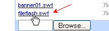 Dan setelah file Flash-nya tersimpan. dekatkan mouse pada file tersebut. untuk mengetahui alamat url file flash-nya. ( untuk Fire Fox lihat di samping kiri di bawah ).